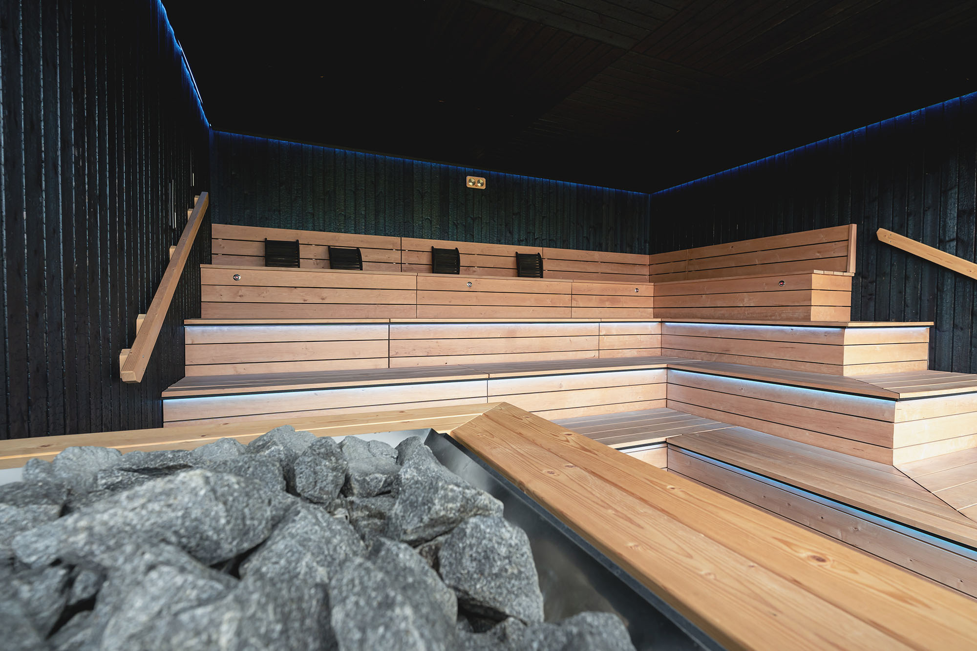 Lopputuloksena syntyi saunojen visuaalista ilmettä ja tunnelmaa tukevat äänimaisemat. Vaihtuvat äänimailmat antavat vieraille joka käynnillä uutta koettavaa.